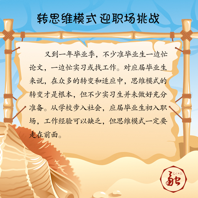 又到一年畢業(yè)季,不少準畢業(yè)生一邊忙論文,一邊忙實習或找工作。對應屆畢業(yè)生來說,在眾多的轉(zhuǎn)變和適應中,思維模式的轉(zhuǎn)變才是根本,但不少實習生并未做好充分準備。從學校步入社會,應屆畢業(yè)生初入職場,工作經(jīng)驗可以缺乏,但思維模式一定要走在前面