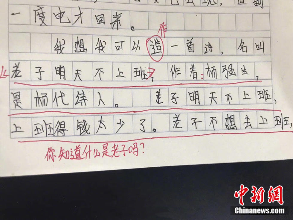學(xué)生寫在作業(yè)里的“金句”。