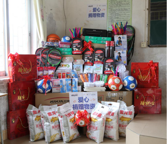 在捐贈(zèng)儀式上,洋洋公益團(tuán)隊(duì)為橫槎小學(xué)的師生們送上籃球、足球、羽毛球、作業(yè)本、鉛筆、橡皮檫、文具盒、打印機(jī)等文體用品和教學(xué)用具,以及大米、臘腸等生活物資。橫槎小學(xué)謝校長代表學(xué)校對愛心團(tuán)隊(duì)一行表示感謝,并將錦旗和學(xué)生用心勾勒的美術(shù)作品回贈(zèng)給碧桂園集團(tuán)廣清區(qū)域、廣州日報(bào)大洋網(wǎng)等愛心代表。