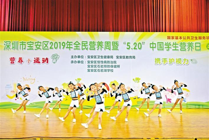 寶安日報5月21日訊 你每天運動夠60分鐘了嗎?每天都有吃蔬菜水果嗎?如今,已有越來越多的人重視營養(yǎng)、運動與人體健康的關(guān)系,每年的5月20日是中國學(xué)生營養(yǎng)日,今年的主題是“營養(yǎng)+運動,攜手護視力”。5月20日下午,寶安區(qū)2019年全民營養(yǎng)周暨“5·20”中國學(xué)生營養(yǎng)日在石巖湖學(xué)校舉行。