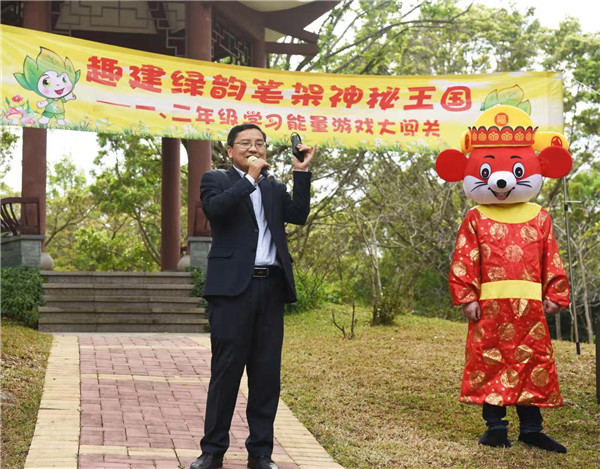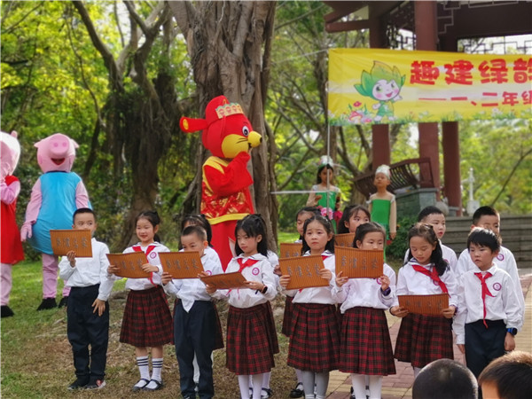 在鳥語相伴下,深圳市學(xué)生文聯(lián)秘書長(zhǎng)謝晨的講話拉開本次活動(dòng)的序幕,他贊揚(yáng)了華新小學(xué)學(xué)生們學(xué)業(yè)上的優(yōu)秀表現(xiàn),肯定本次活動(dòng)寓教于自然的教學(xué)方式,也表達(dá)了多次參加華新小學(xué)的活動(dòng)的喜悅之情。隨后,每個(gè)年級(jí)各準(zhǔn)備了兩個(gè)節(jié)目為現(xiàn)場(chǎng)帶來歡樂的氣氛,“綠韻筆架?趣建我的學(xué)習(xí)能量王國(guó)”活動(dòng)正式開始,學(xué)生們紛紛往自己年級(jí)的活動(dòng)區(qū)域飛奔而去。