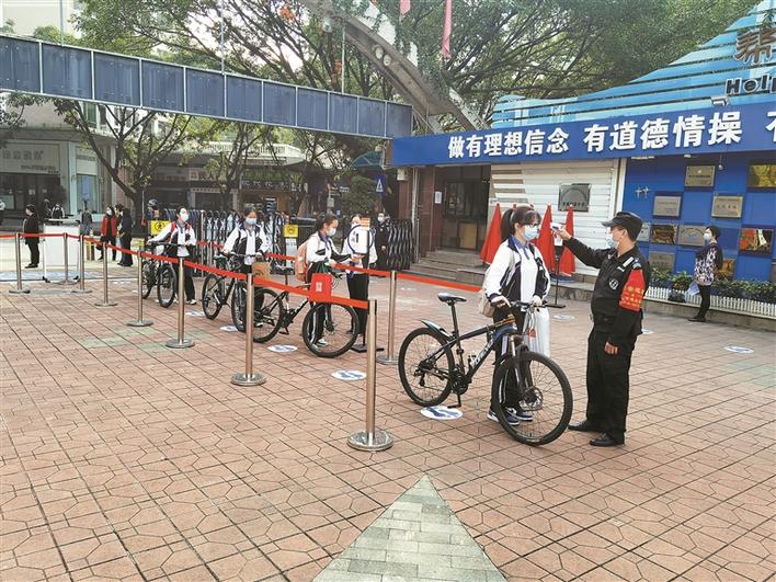 龍城初級(jí)中學(xué)學(xué)生騎自行車返校進(jìn)校門走專門的通道。晶報(bào)記者陳利城/攝