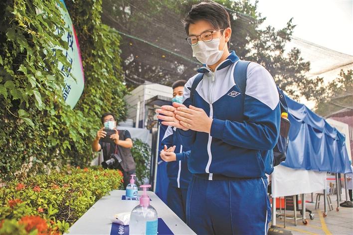 深圳實(shí)驗(yàn)學(xué)校初中部初三學(xué)生進(jìn)校門后自覺(jué)消毒洗手。晶報(bào)記者賴?yán)?攝