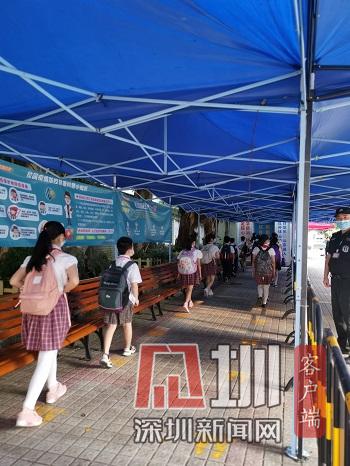 我起了個大早,高高興興地來到學(xué)校。在校門口不遠處,我看見一排排金色小腳印在望著我笑,好像在對我說:“歡迎你返校!”進入校園后,熟悉的林蔭道下多了許多的大帳篷,帳篷中間有一個巨大的測溫箱。走過測溫箱,一排感應(yīng)免洗洗手液站得筆直,正在招呼我們趕緊洗手消毒。因為新冠疫情,我們的校園不一樣了,多了許多守護我們健康的安全小衛(wèi)士。