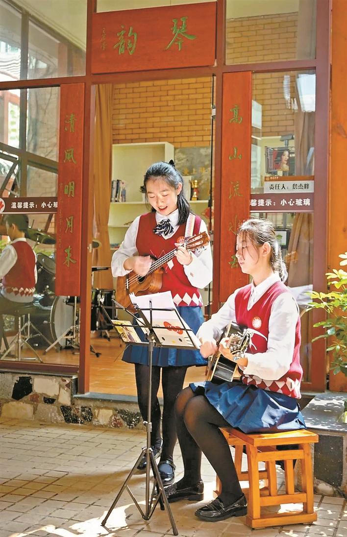 校園一角的“樂·舞臺(tái)”上擺放著一架鋼琴,陳鐵成校長說:“在沒有疫情的時(shí)候,這架鋼琴是不上鎖的,任何老師或?qū)W生都可以彈奏。同樣開放的還有琴韻閣、清心閣,不要擔(dān)心學(xué)生會(huì)破壞這些東西,美自然地呈現(xiàn)在學(xué)生們面前,自然地發(fā)生,真正的教育就是在這樣的情境中發(fā)生的?!?/p>