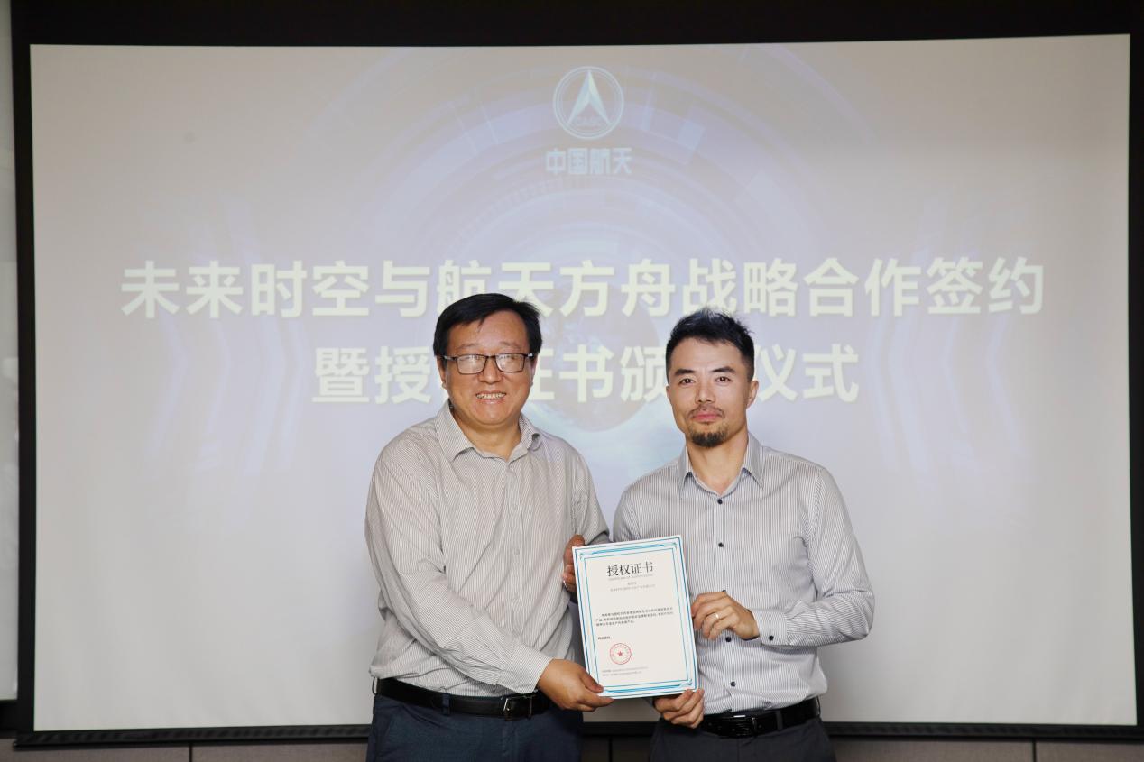 見圳客戶端·深圳新聞網(wǎng)2021年5月31日訊 (記者 陳彬)為深入推進(jìn)航天科技文化技術(shù)在社會(huì)生活、人民健康、科普教育、素質(zhì)教育和文化產(chǎn)業(yè)等領(lǐng)域的成果轉(zhuǎn)化和廣泛應(yīng)用,在中國航天系統(tǒng)科學(xué)與工程研究院有關(guān)領(lǐng)導(dǎo)的關(guān)心幫助下,未來時(shí)空(深圳)文化產(chǎn)業(yè)有限公司和北京航天方舟空間技術(shù)有限公司就航天文創(chuàng)產(chǎn)品開發(fā)、航天康養(yǎng)項(xiàng)目建設(shè)、航天科普教育及商業(yè)化航天器應(yīng)用等方面達(dá)成了全面合作,于5月28日上午在北京簽署戰(zhàn)略合作協(xié)議并頒發(fā)授權(quán)證書。