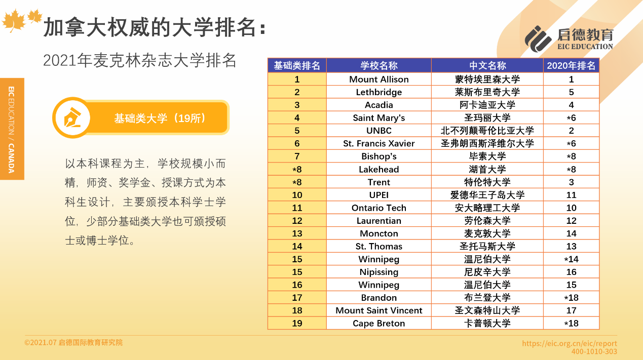 加拿大高校以公立為主,各具特色與優(yōu)勢(shì),教育質(zhì)量在官方評(píng)價(jià)體系中并沒(méi)有顯著區(qū)別,因此,啟德教育建議,在選擇院校時(shí),除了參考麥克林雜志排名,還應(yīng)該通過(guò)院校官網(wǎng)或者留學(xué)顧問(wèn),更全面地了解加拿大高校的實(shí)力。麥克林排名根據(jù)加拿大大學(xué)的類(lèi)型,分為醫(yī)博類(lèi)、綜合類(lèi)、基礎(chǔ)類(lèi)三個(gè)排名,值得一提的是,連續(xù)21年位于基礎(chǔ)類(lèi)大學(xué)排名榜首的蒙特艾莉森大學(xué),是加拿大本科畢業(yè)生中獲得羅德獎(jiǎng)學(xué)金人數(shù)最多的學(xué)校,羅德獎(jiǎng)學(xué)金又被稱(chēng)為“全球本科生諾貝爾獎(jiǎng)”。此外,基礎(chǔ)類(lèi)排名第19的卡普頓大學(xué),在最近一期的Analytics Insight雜志中,與美國(guó)麻省理工學(xué)院、英國(guó)華威大學(xué)等一同入選了2021年10家最著名的分析和數(shù)據(jù)科學(xué)機(jī)構(gòu)。