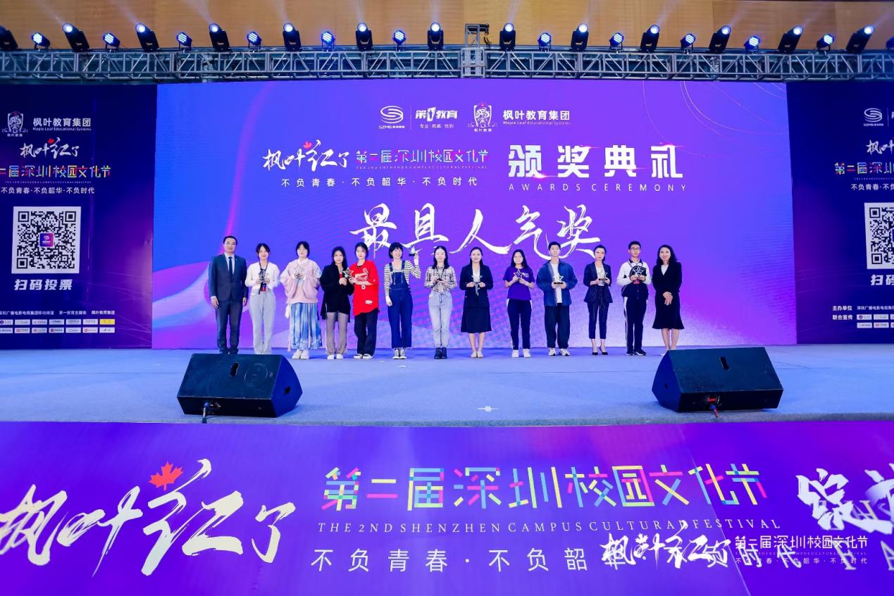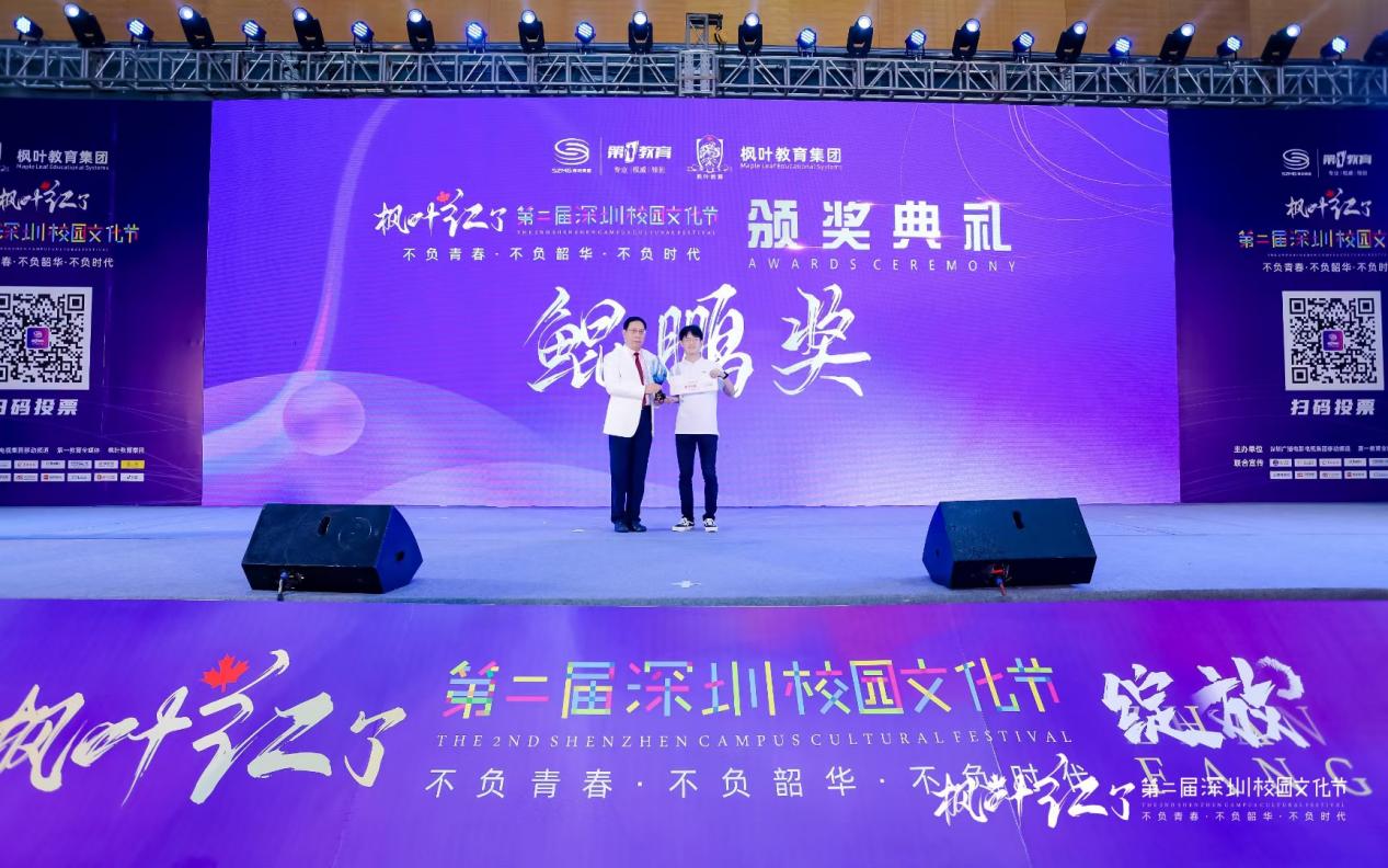 另據(jù)了解,本屆活動不以競賽為目的,不設(shè)專業(yè)評委,不設(shè)專業(yè)分?jǐn)?shù),不設(shè)獎牌等級,而是以鼓勵學(xué)生全面發(fā)展、校園文化交流為初心,由觀眾們自發(fā)投票評選出魅力社團(tuán)獎、優(yōu)秀指導(dǎo)老師獎、鯤鵬獎、綻放獎、最具人氣獎。記者從現(xiàn)場了解到,獲得本屆魅力社團(tuán)獎的學(xué)校有10所,分別是:深圳市南山區(qū)文理實(shí)驗(yàn)學(xué)校(集團(tuán))《模擬聯(lián)合國社》、南山區(qū)前海學(xué)校《棒球隊(duì)》、深圳實(shí)驗(yàn)學(xué)校高中部《回聲合唱團(tuán)》、深圳高級中學(xué)(集團(tuán))中心校區(qū)《深高學(xué)生戲劇團(tuán)》、深圳市楓葉學(xué)?!队⒄Z戲劇社》、深圳市龍華中學(xué)《跆拳道空手》、深圳市蛇口育才教育(集團(tuán))育才中學(xué) 《404樂隊(duì)》、深圳市育新學(xué)校 《The best軍樂團(tuán)》、南方科技大學(xué)附屬中學(xué)《機(jī)器人隊(duì)》、深圳市藝術(shù)高中《鐘呂交響管樂團(tuán)》;獲得本屆校園文化節(jié)鯤鵬獎(唯一)的學(xué)校是:南方科技大學(xué)附屬中學(xué);獲得本屆校園文化節(jié)綻放獎的是9所學(xué)校,分別是:深圳市第一職業(yè)技術(shù)學(xué)校、深圳中學(xué)、深圳市藝術(shù)高中、深圳市寶安中學(xué)(集團(tuán))、深圳市第三職業(yè)技術(shù)學(xué)校、深圳市楓葉學(xué)校、深圳市龍崗區(qū)龍城高級中學(xué)、寶安區(qū)為明雙語實(shí)驗(yàn)學(xué)校、深圳市蛇口育才教育(集團(tuán))育才中學(xué);獲得現(xiàn)場最具人氣獎的學(xué)校有10所,分別是:深圳市第一職業(yè)技術(shù)學(xué)校、深圳市福田區(qū)華強(qiáng)職業(yè)技術(shù)學(xué)校、深圳市第三職業(yè)技術(shù)學(xué)校、深圳大學(xué)附屬中學(xué)、紅嶺中學(xué)(集團(tuán))石廈初中部、龍崗區(qū)蘭著學(xué)校、萬科梅沙書院、深圳市南山區(qū)文理實(shí)驗(yàn)學(xué)校(集團(tuán))、筍崗中學(xué)、寶安中學(xué)(集團(tuán));最后同時獲得本屆校園文化節(jié)優(yōu)秀指導(dǎo)老師獎的學(xué)校分別來自:南方科技大學(xué)附屬中學(xué)、深圳市第一職業(yè)技術(shù)學(xué)校、深圳中學(xué)、深圳市蛇口育才教育(集團(tuán))育才中學(xué)、深圳市寶安中學(xué)(集團(tuán))、深圳市第三職業(yè)技術(shù)學(xué)校、深圳市藝術(shù)高中、深圳市楓葉學(xué)校、寶安區(qū)為明雙語實(shí)驗(yàn)學(xué)校、深圳市龍崗區(qū)龍城高級中學(xué)。