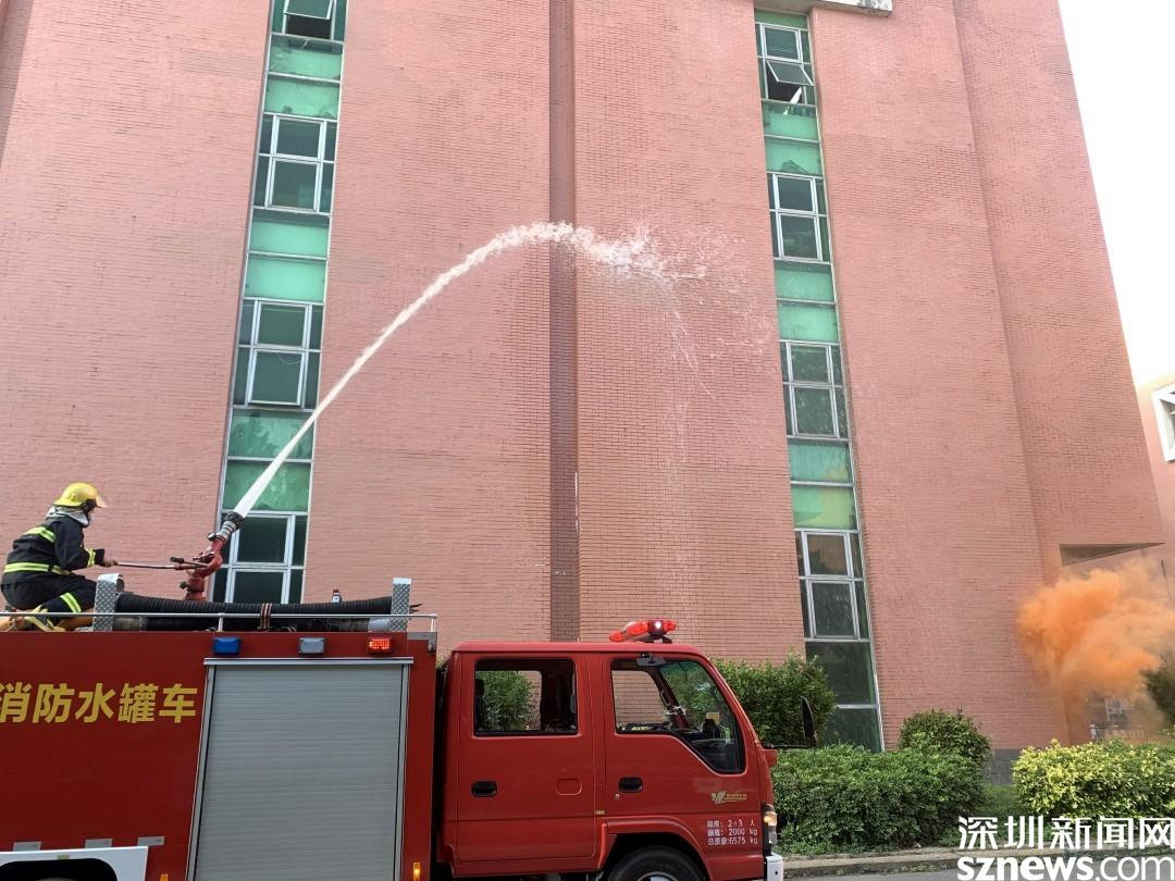 演練情景設(shè)定為工業(yè)園巡查人員發(fā)現(xiàn)火情,立刻上報(bào)并報(bào)警。隨后火警警報(bào)驟響,樓道內(nèi)冒出濃煙,疏散演練正式開始。工業(yè)園職工、居民在各組工作人員的指揮下,用口罩、衣服等捂口鼻,屈膝彎腰沿著既定的疏散路線,迅速向安全區(qū)域撤離。隨后社區(qū)消防員到達(dá)現(xiàn)場(chǎng),用消防高壓水槍進(jìn)行高空滅火,撲滅火災(zāi),解除警報(bào)。演練結(jié)束后,社區(qū)還組織工業(yè)園職工、居民參加安全體驗(yàn)活動(dòng),學(xué)習(xí)消防救援設(shè)備的用法、進(jìn)行消防結(jié)繩和滅火實(shí)操訓(xùn)練。