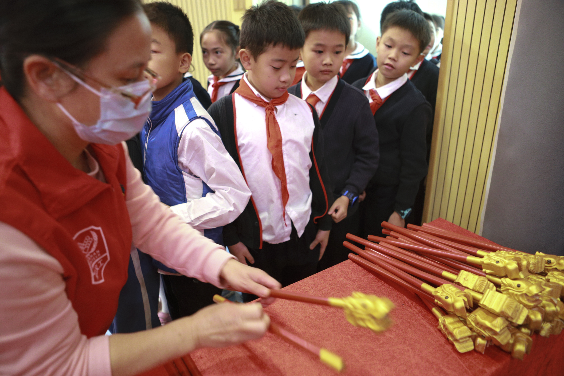 參加本次活動(dòng)的學(xué)生們大感驚喜和意外,他們?cè)谌雸?chǎng)的時(shí)候都從工作人員的手上領(lǐng)到一份特別可愛的佾舞“龠翟”的小道具。