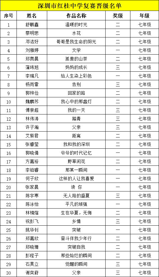 冰心文學盛典 | 深圳市紅桂中學晉級復賽名單公布