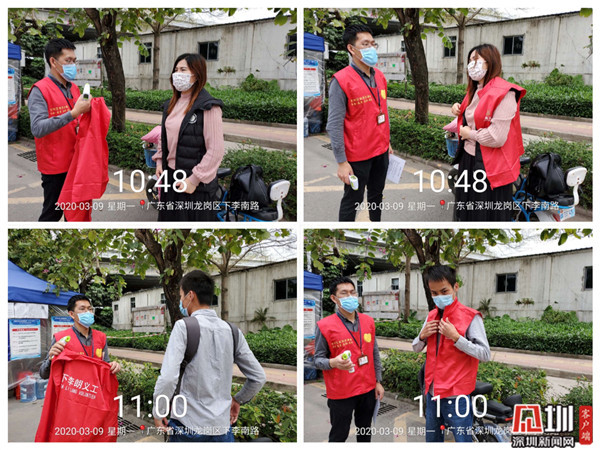在社區(qū)工作人員的指導(dǎo)下,這位男子穿上“紅馬甲”,手拿體溫槍,立即投入到了防疫義工服務(wù)中。為進出人員測量體溫、登記等,這位男子“不漏一車一人”,義工服務(wù)做得十分認真。半小時志愿服務(wù)后,該男子意識到自己不戴頭盔的錯誤行為,并表示以后會注意,“這是一次很特別的‘教訓(xùn)’,以后我肯定會記住戴頭盔的!”