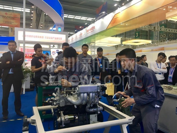 寶安職業(yè)技術(shù)學(xué)院學(xué)生現(xiàn)場進行汽車發(fā)動機拆裝與檢測