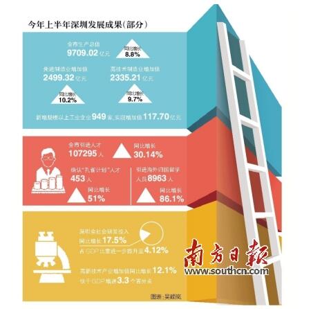 創(chuàng)新是深圳率先實現(xiàn)成功轉(zhuǎn)型的亮麗名片,是深圳率先實現(xiàn)動力轉(zhuǎn)換的制勝秘訣。如果說,作為特區(qū),深圳之“特”過去更多地體現(xiàn)在政策探路,那么,現(xiàn)在則更多體現(xiàn)在轉(zhuǎn)型創(chuàng)新。近年來,深圳經(jīng)濟特區(qū)把創(chuàng)新作為城市主導(dǎo)戰(zhàn)略,先后制定了全國首部國家創(chuàng)新型城市總體規(guī)劃和促進科技創(chuàng)新的地方性法規(guī),出臺自主創(chuàng)新“33條”、創(chuàng)新驅(qū)動發(fā)展“1+10”若干措施等一系列政策措施。經(jīng)過多年不懈的努力,深圳創(chuàng)新驅(qū)動發(fā)展取得了積極成效,創(chuàng)新正加快向高端前沿邁進,從跟跑、并跑向領(lǐng)跑躍升。在創(chuàng)新的驅(qū)動下,深圳實現(xiàn)了新常態(tài)下動力轉(zhuǎn)換和新一輪轉(zhuǎn)型升級,保持了有質(zhì)量、有效益、可持續(xù)的發(fā)展。事實為證:今年上半年,深圳全社會研發(fā)投入增長17.5%,占GDP比重進一步提升至4.12%;高新技術(shù)產(chǎn)業(yè)增加值增長12.1%,快于GDP增速3.3個百分點,呈現(xiàn)出“逐季攀高、質(zhì)量提升、結(jié)構(gòu)優(yōu)化、動力增強、趨勢向好”的鮮明特點。