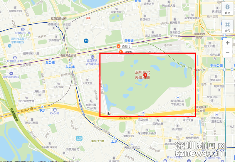 2015年10月16日,深圳新聞網(wǎng)無人機(jī)團(tuán)隊(duì)曾對(duì)此塊用地進(jìn)行了航拍。深圳高爾夫俱樂部球場(chǎng),深圳經(jīng)濟(jì)特區(qū)第一個(gè)高爾夫球場(chǎng),用地位于福田中心區(qū)深南大道與濱河大道之間,東鄰新洲路,西距香蜜湖路。有人認(rèn)為這座球場(chǎng)的存在,使得城市交通微循環(huán)被阻隔,但也因?yàn)檫@座球場(chǎng)的存在,深圳市中心得以保留一塊巨大的綠肺,沒有受到鋼筋水泥侵蝕。