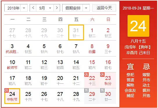 10月:國慶長假