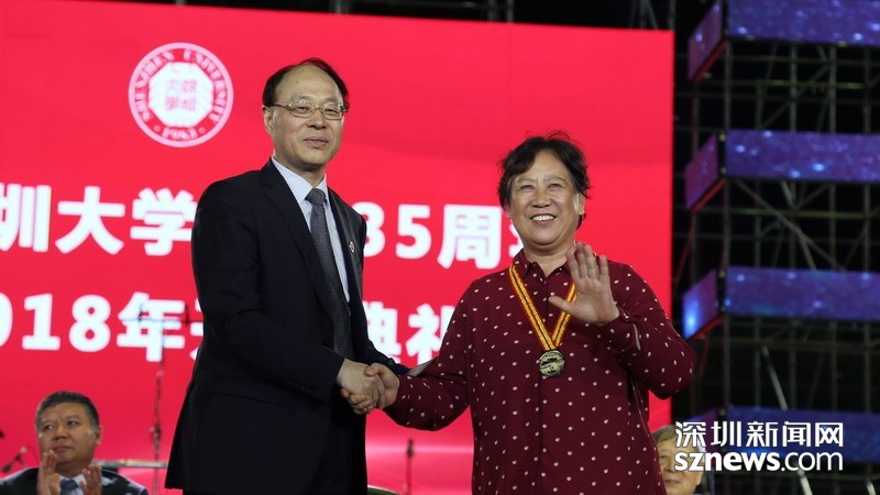 深大黨委書記劉洪一為榮休獎杰出貢獻(xiàn)獎獲得者代表鄭易之教授頒獎