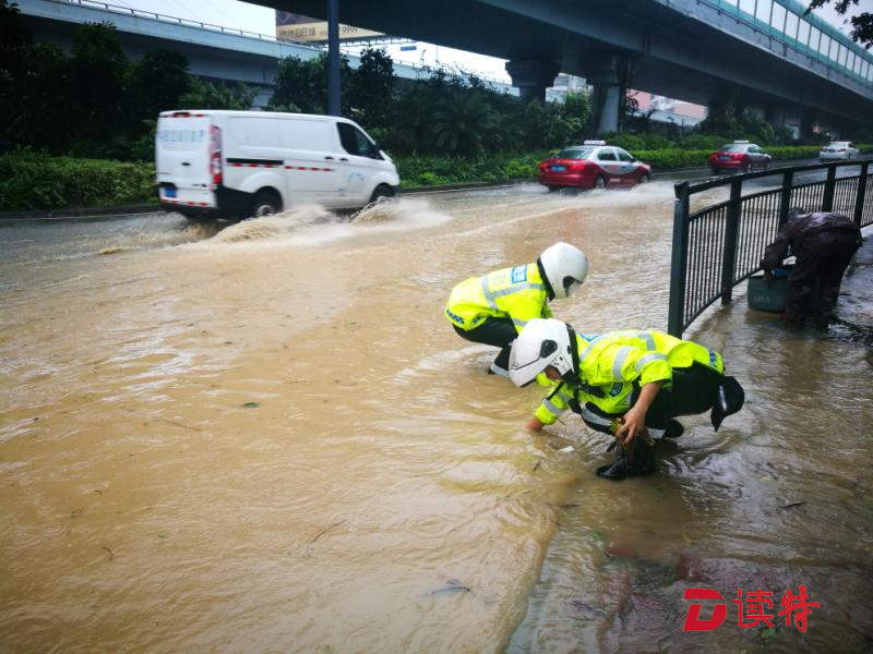 9月16日上午7時許,深圳已接近“山竹”的10級風圈,羅湖區(qū)已是風雨交加,風力正在逐漸增強。艾力軍領(lǐng)著姚書龍、陳展廷、陳展聰3名警員駕駛警車,開始了迎戰(zhàn)臺風的巡邏。深南路、文錦路、泥崗路、沿河路……一邊巡邏,一邊尋找道路交通安全隱患,一路上除了警車,已經(jīng)很難看到其它車輛,看著空曠的道路,艾力軍的心里卻感到了踏實。