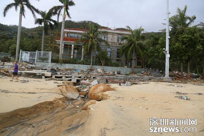 小梅沙旅游度假村景區(qū)內(nèi)沙灘海沙被卷走超7萬多立方,約2000米的堤岸及道路沖垮,公共、建筑設(shè)施及構(gòu)筑物全部受損,部分完全損毀,13處經(jīng)營管理場所損毀,綠化、樹木等嚴重破壞,直接經(jīng)濟損失預(yù)估超過5000萬元。