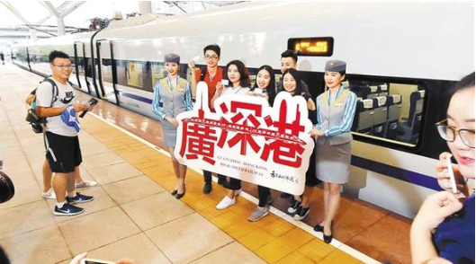 6點(diǎn)44分,G5711次列車從深圳北站駛出,開往香港西九龍站。