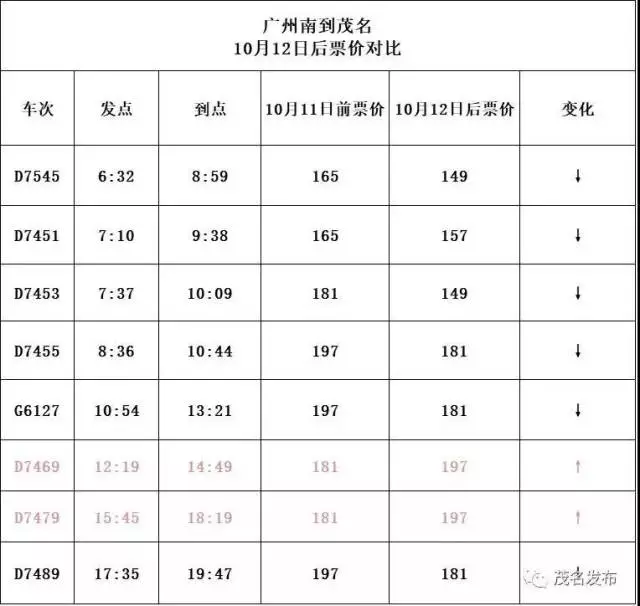 D7451次(7點(diǎn)10分班次)由原來的206元調(diào)整為196元;