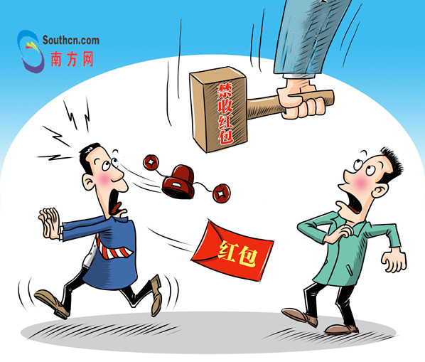 節(jié)日期間更應(yīng)提高拒收“紅包”的警惕性和自覺性。(漫畫:小栗子)
