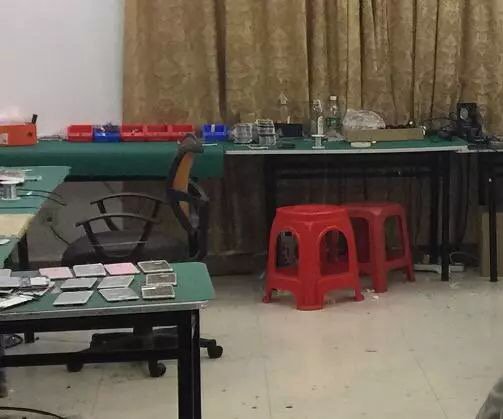 讀特記者從深圳市市場和質量監(jiān)管委了解到:該委市場稽查局聯(lián)合光明局在光明區(qū)公明街道搗毀一生產侵權蘋果手機的窩點。