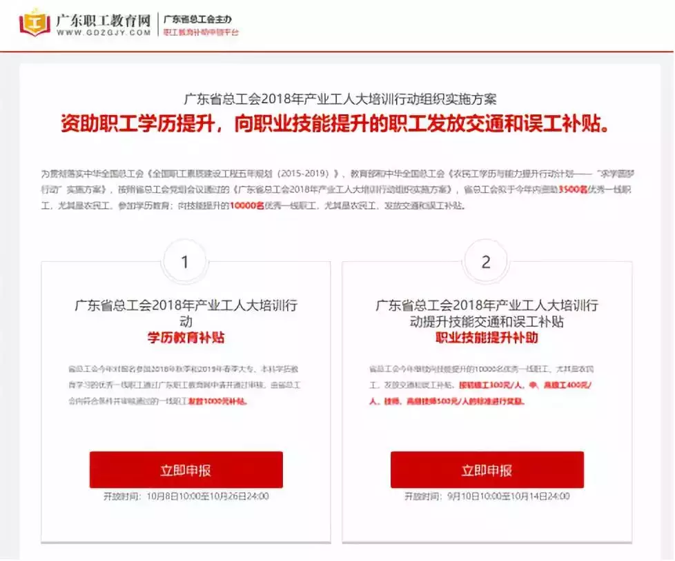為提高我省產(chǎn)業(yè)工人隊(duì)伍素質(zhì),幫助更多產(chǎn)業(yè)工人提升技能水平,按照省總工會(huì)黨組會(huì)議通過(guò)的《廣東省總工會(huì)2018年產(chǎn)業(yè)工人大培訓(xùn)行動(dòng)組織實(shí)施方案》,省總工會(huì)繼續(xù)向10000名技能提升的優(yōu)秀產(chǎn)業(yè)工人發(fā)放交通和誤工補(bǔ)貼。取得職業(yè)資格證書可獲300~500元補(bǔ)貼,名額有限,先到先得!