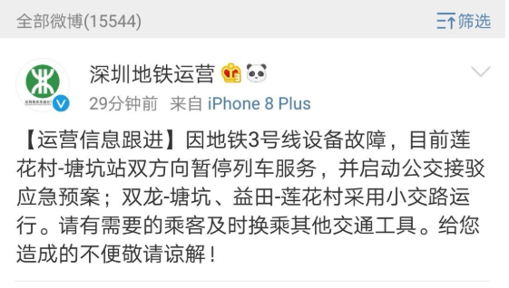 9日上午,深圳地鐵3號(hào)線發(fā)生故障致列車停運(yùn)