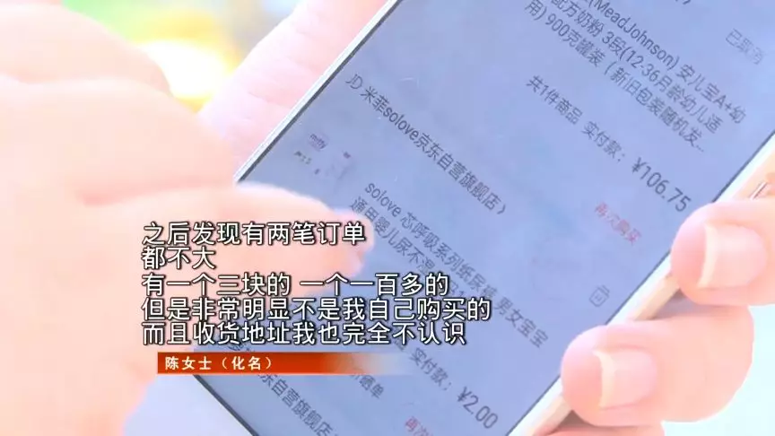 陳女士表示,昨天上午看到已派送的兩個訂單,有奶粉和尿不濕,這都不是自己購買的。