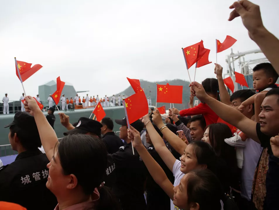 ▲深圳艦結(jié)束為期4天的訪深行程返回湛江母港,數(shù)百市民自發(fā)歡送10月20日下午3時許,蛇口郵輪母港碼頭早已聚滿了自發(fā)前來為深圳艦送行的數(shù)百名市民群眾。碼頭上,市民揮舞著五星紅旗,高呼:“歡迎深圳艦再回來!”艦艇上面,全體海軍官兵站立艦舷向市民敬禮,隨著一聲長長的汽笛聲,海軍深圳艦艦艏犁開海面,拖著長長的尾跡,帶著深圳第二故鄉(xiāng)人民的殷殷離別之情,起航駛向湛江母港。