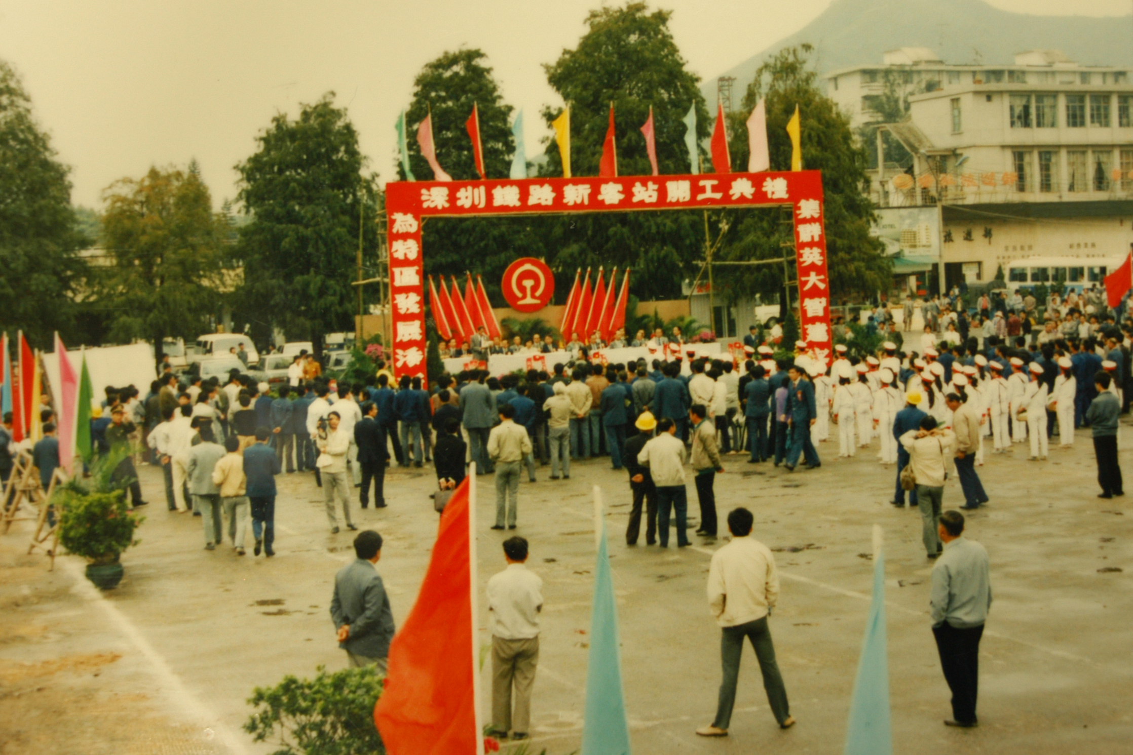 1991年10月12日,深圳新客站落成。時任國務(wù)院副總理田紀云出席典禮并剪彩。圖為典禮盛況