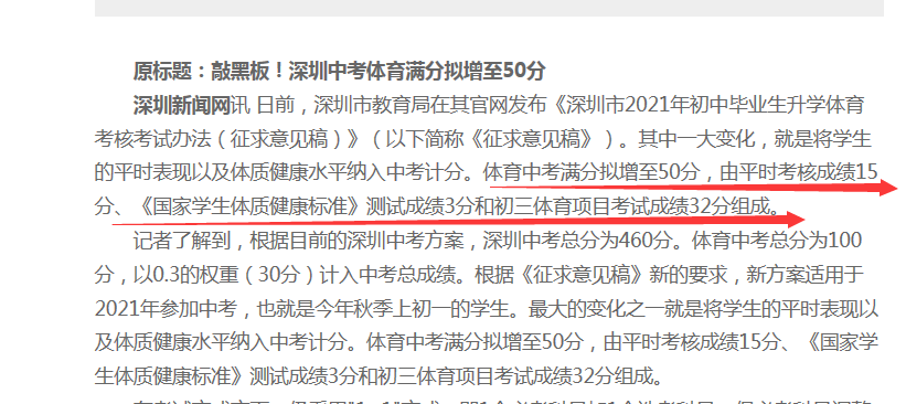 中考體育滿分擬增至50分啦