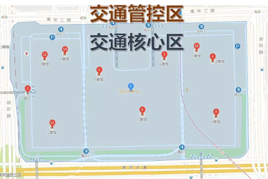 福華三路會(huì)展中心段(含)以南,濱河大道會(huì)展中心段輔道(含)以北,益田路會(huì)展中心段(含)以東,金田路會(huì)展中心段(含)以西的區(qū)域