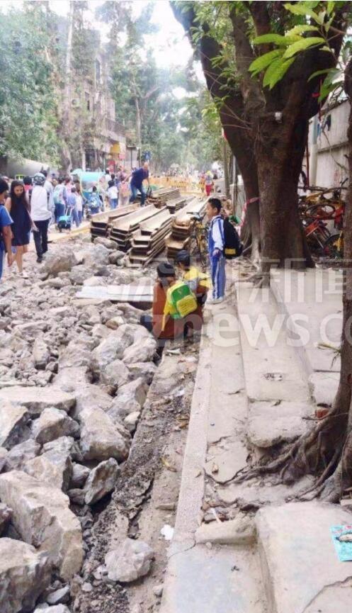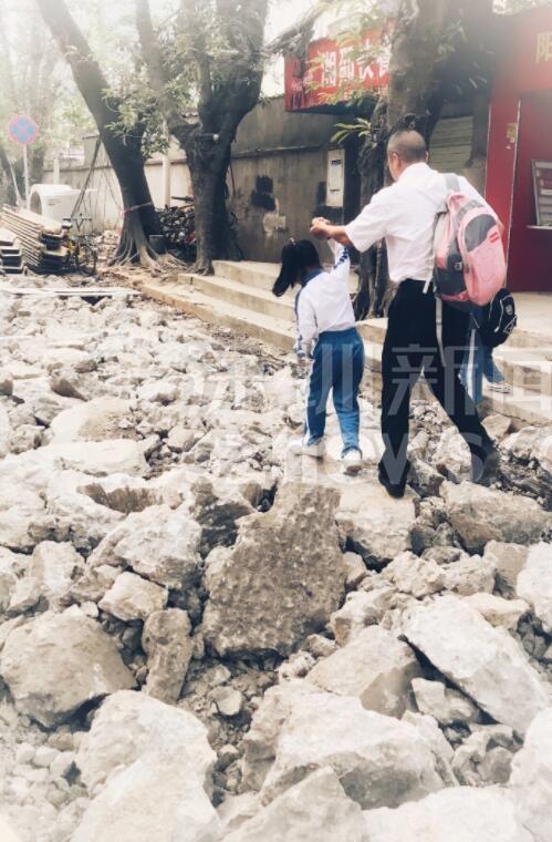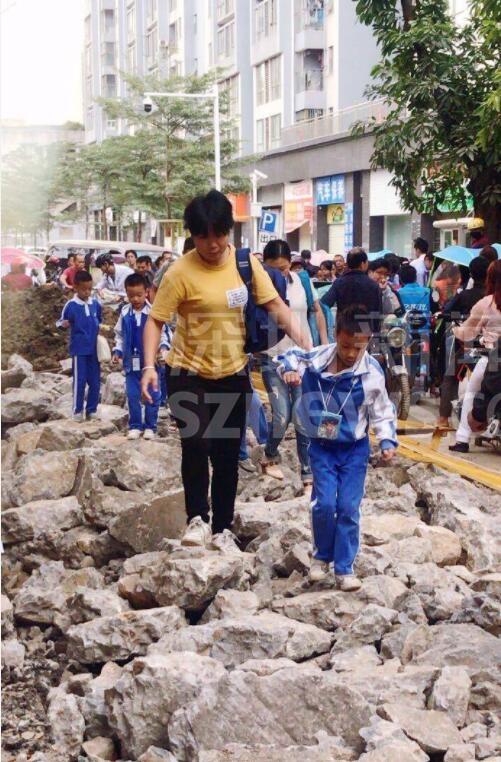 另有網(wǎng)友跟帖表示:同學(xué)們求學(xué)路坎坷,看得揪心!從現(xiàn)場(chǎng)圖可以看到,學(xué)生上下學(xué)都要穿過(guò)工地。路面被挖開(kāi),道路邊上只留下很窄的一條小道。上下學(xué)高峰期,成群結(jié)隊(duì)的學(xué)生在碎石穿行,旁邊小道上行人、三輪、電動(dòng)單車(chē)堵成一鍋粥,存在很大的安全隱患。
