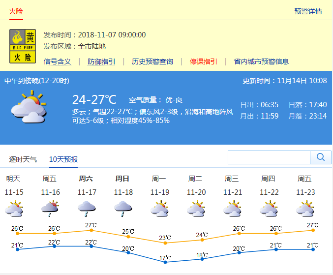 市氣象局發(fā)布未來十天天氣預(yù)報(bào)(數(shù)據(jù)更新于11月14日10時(shí)08分)