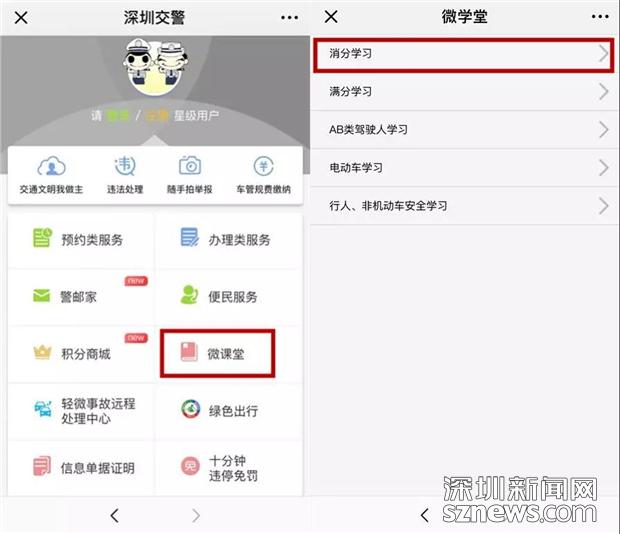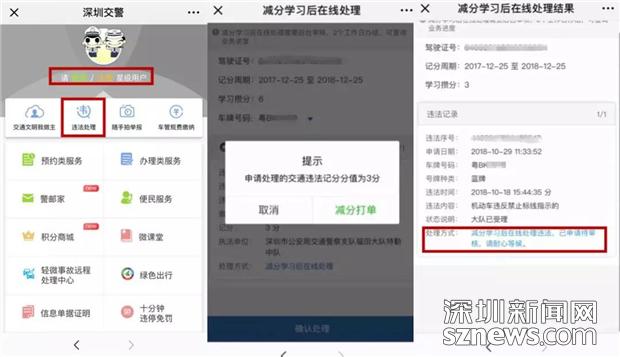 早在2015年,星級用戶平臺就上線了“減分學(xué)習(xí)”功能,通過減分學(xué)習(xí),一個記分周期最多可以使用18分駕駛證記分。通過減分學(xué)習(xí)獲得了6分,該怎么處理交通違法呢?11月份,深圳交警在星級用戶平臺推出了“使用減分學(xué)習(xí)獲得的記分在線處理交通違法”業(yè)務(wù)。