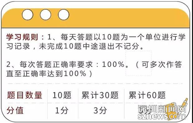 值得注意的是,申請減分學(xué)習(xí)的駕駛必須符合駕駛證準(zhǔn)駕車型為C1、C2、C3,車輛所屬地和違法發(fā)生地均為深圳,累計記分≤9分(一次性記滿12分,或已經(jīng)累計達(dá)到12分的駕駛?cè)顺猓┑臈l件,符合這些條件的即可進(jìn)入“深圳交警星級用戶——微課堂——消分學(xué)習(xí)——答題攢分”進(jìn)行減分學(xué)習(xí)。每天答題以10題為一個單位進(jìn)行學(xué)習(xí)記錄,未完成10題中途退出不記分,每次答題正確率要求為100%,即答對10題可獲得1分,累計答對30題可獲得3分,累計答對60題可獲得6分。