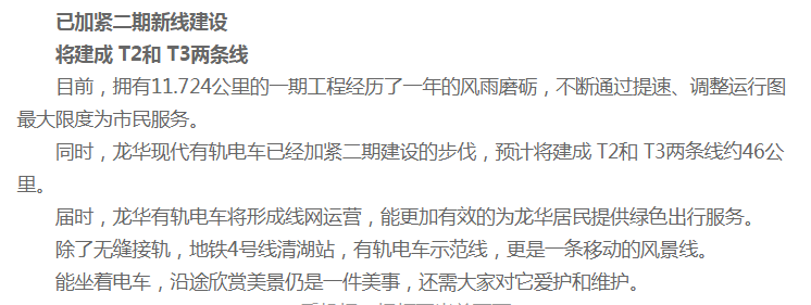 龍華有軌電車也將加緊建設,建成T2和 T3兩條線