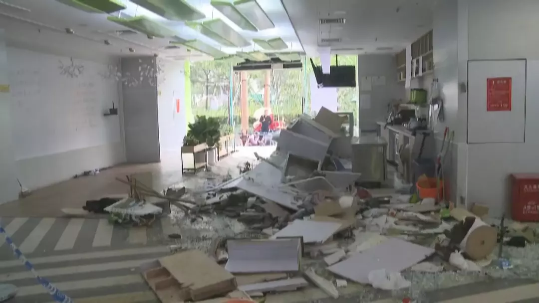今天上午,記者來到該家飲品店,此時(shí),店里是一片狼藉,玻璃碎片散落一地,飲品店四周也拉起了警戒線。