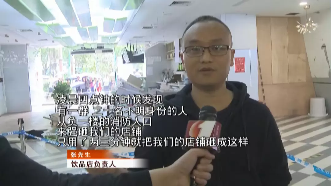 打砸事件發(fā)生后,張先生也向警方報(bào)了案。張先生告訴記者,事發(fā)在凌晨時(shí)分,可該棟大廈早已鎖上大門,自己?jiǎn)T工都進(jìn)不去,這么多位不明人員能進(jìn)入到大廈內(nèi),并且迅速打砸飲品店,不知道是如何做到的。