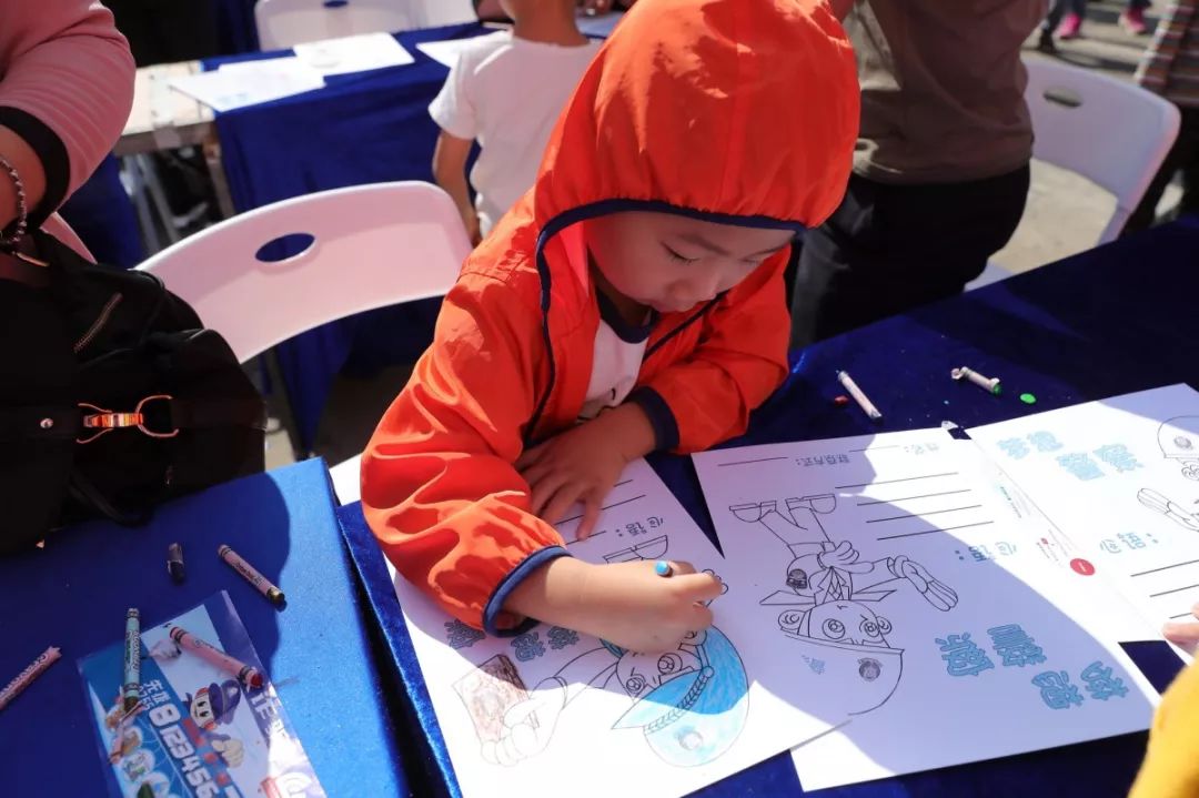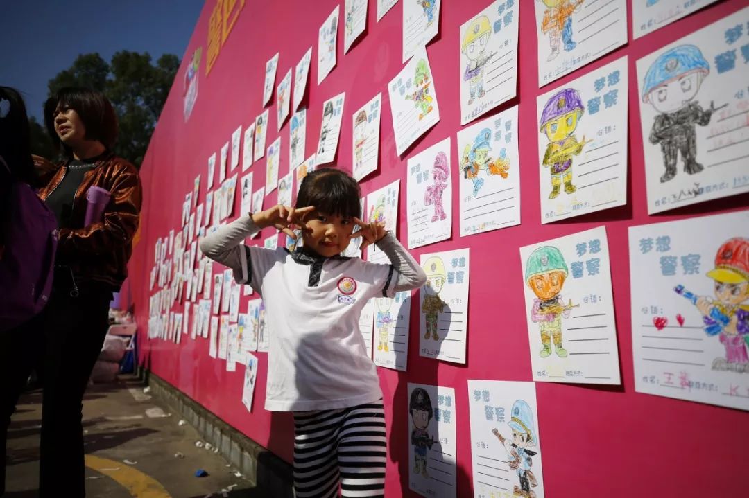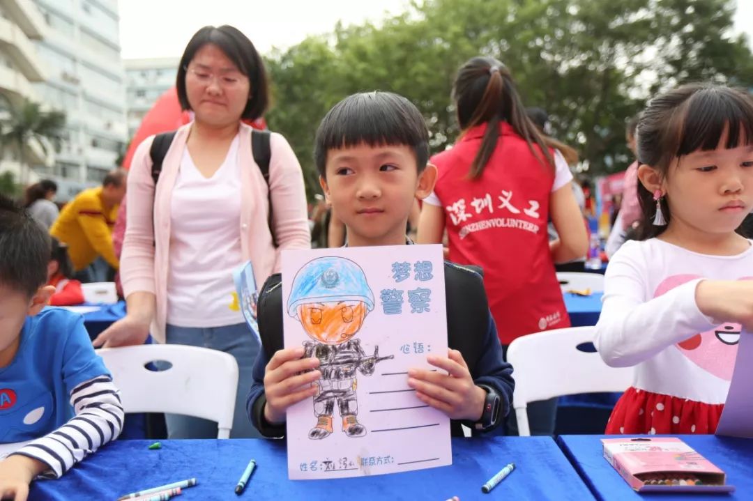 最具童年味道和勃勃生機(jī),大人和小孩現(xiàn)場涂鴉,寫出對(duì)警察想說的話,也可以在畫架畫板上畫出自己心目中的警察,在孩子心中種下警察的種子,滿滿的寄語,是對(duì)福田警察的祝福和期待,這也是警察蜀黍肩膀上沉甸甸的責(zé)任和勇往直前的力量!