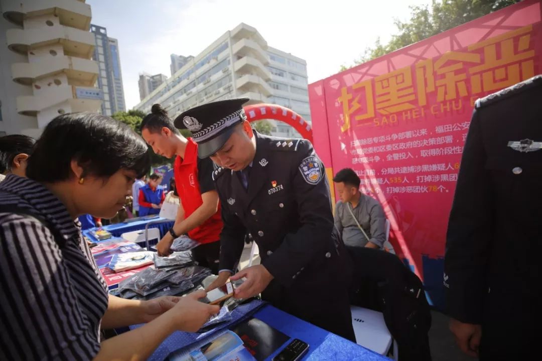 深圳市公安局指揮部有獎(jiǎng)舉報(bào)中心聯(lián)合福田公安分局開展“有獎(jiǎng)舉報(bào)”宣傳活動(dòng),民警現(xiàn)場發(fā)放宣傳資料,積極發(fā)動(dòng)群眾踴躍舉報(bào),不斷提高群眾對(duì)掃黑除惡專項(xiàng)斗爭的知曉度,市民咨詢不斷,形成了對(duì)黑惡勢(shì)力“零容忍”和人人喊打的良好氛圍。