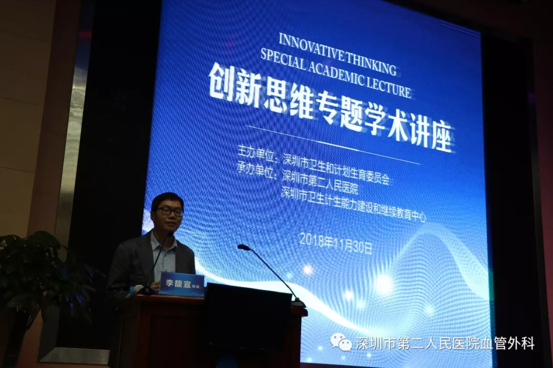 下午,景在平教授參加了由深圳市衛(wèi)生和計劃生育委員會主辦、深圳市第二人民醫(yī)院和深圳市衛(wèi)生計生能力建設和繼續(xù)教育中心聯(lián)合承辦的創(chuàng)新思維專題學術(shù)講座,題目為《技術(shù)與藝術(shù)的結(jié)合與創(chuàng)思》。會議由市衛(wèi)生計生委科教處李馥宣科長主持,出席領(lǐng)導有市二院聶國輝院長、趙永勝副院長,其他出席嘉賓及與會人員包括全市各醫(yī)療衛(wèi)生機構(gòu)醫(yī)務人員代表、相關(guān)產(chǎn)業(yè)機構(gòu)工作人員代表和全市住院醫(yī)師規(guī)范化培訓醫(yī)師、教師及基地管理人員代表等。