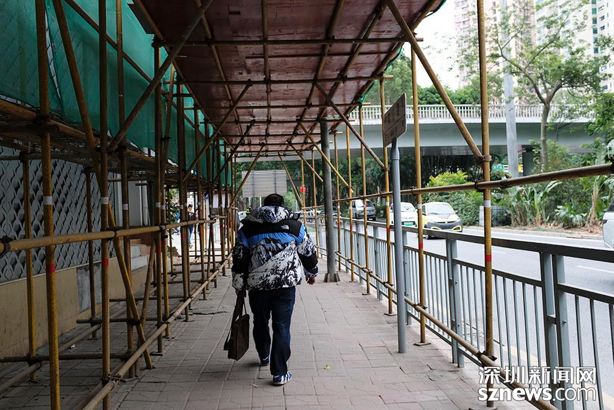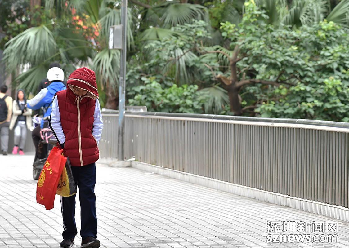 2018年12月12日,羅湖翠竹天橋,老人穿著羽絨服出行。
