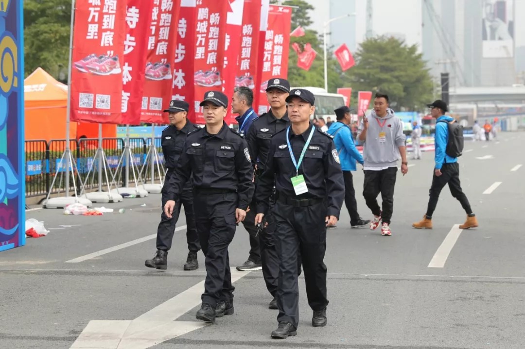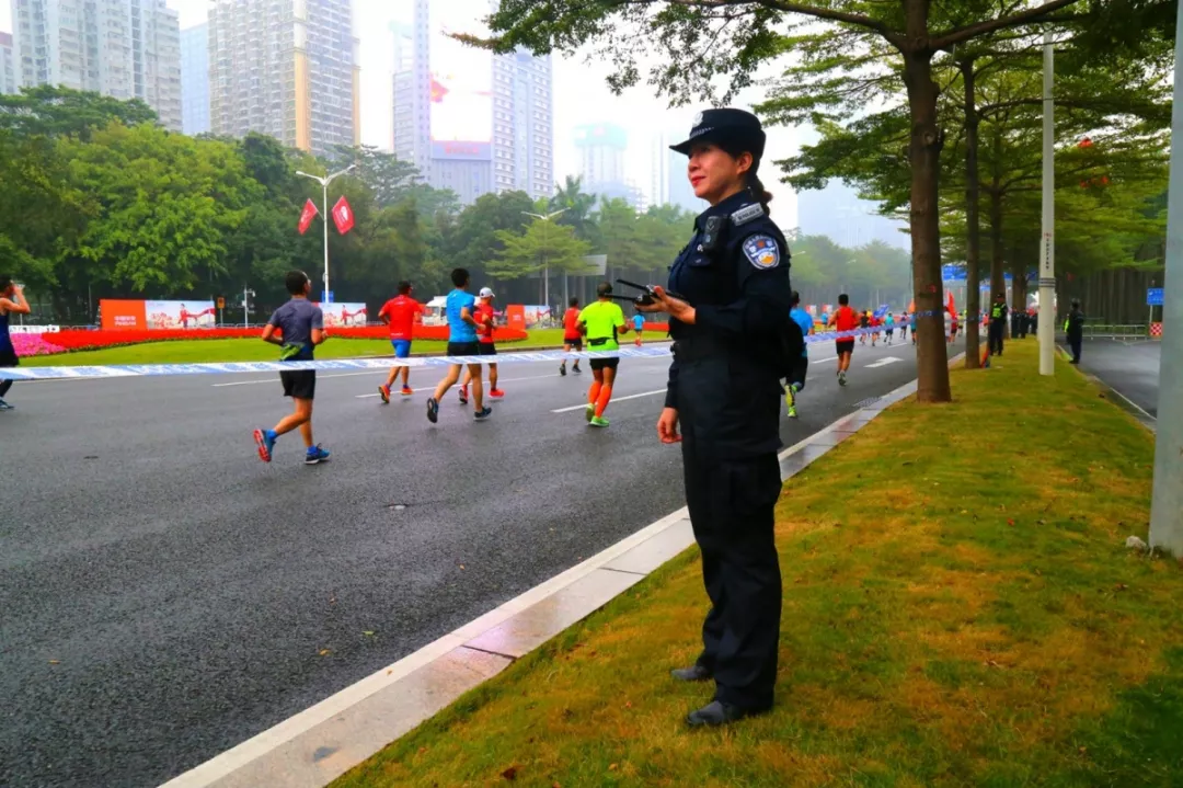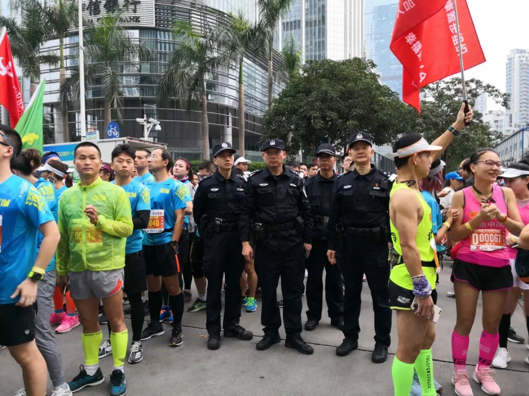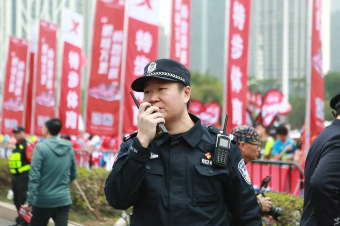 為全力做好此次馬拉松安保工作,福田警方提前謀劃、科學部署,承擔全程、半程馬拉松起點及6.2公里賽道的安全保衛(wèi),共出動警力1972人,啟用20套4G現(xiàn)場圖傳 “千里眼”,20套視頻識別探頭“守點”;警力實時定位系統(tǒng)、118個高低空視頻預案“守線”;71套現(xiàn)場視頻執(zhí)法記錄儀。從凌晨4點到下午2點,用長達10個小時的安?!榜R拉松”為賽事的順利開展保駕護航。