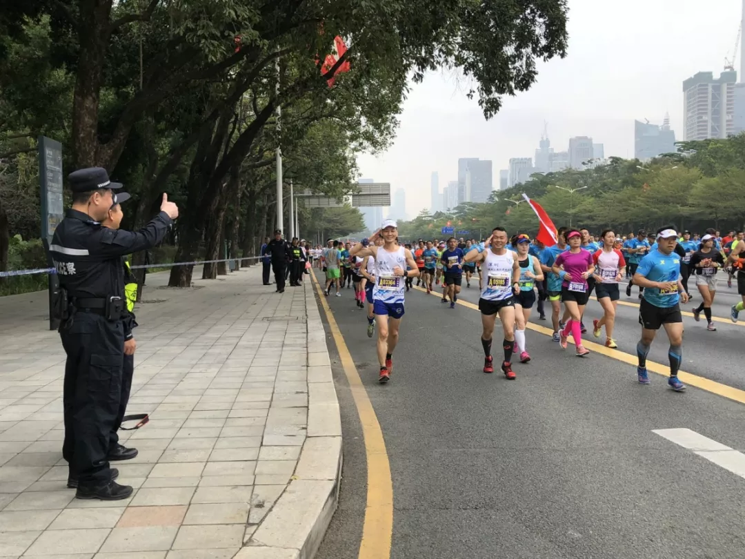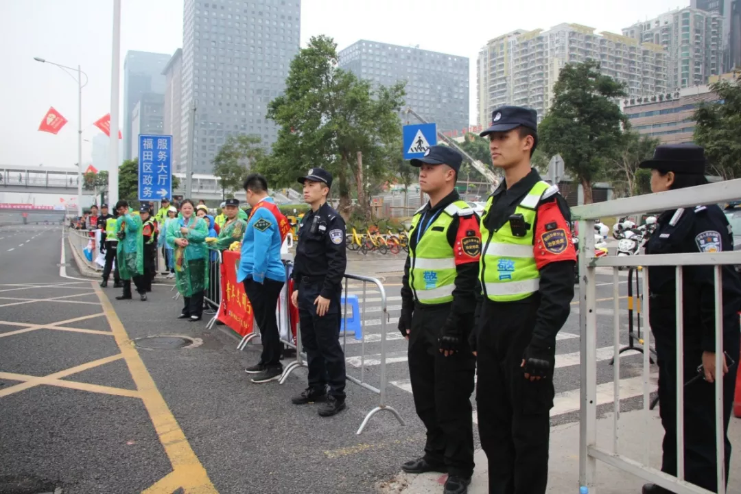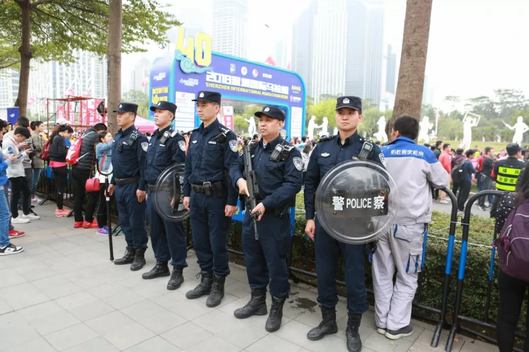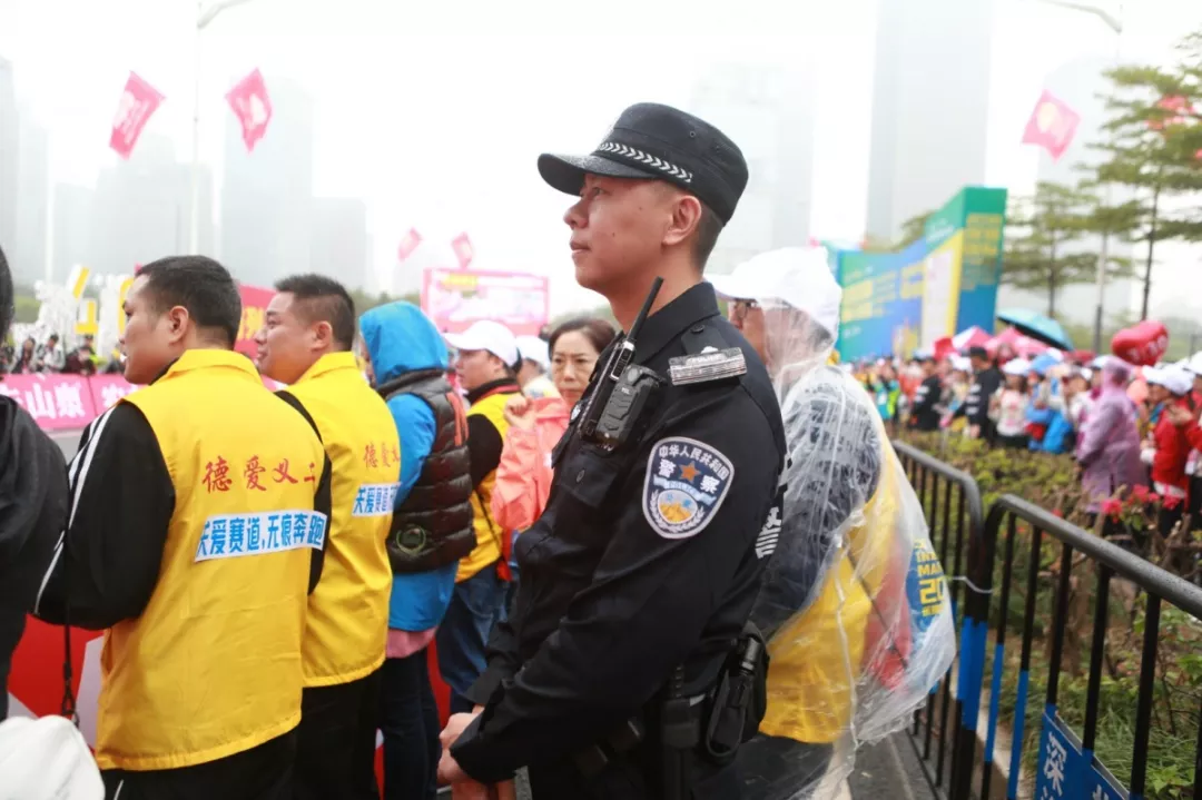 為全力做好此次馬拉松安保工作,福田警方提前謀劃、科學部署,承擔全程、半程馬拉松起點及6.2公里賽道的安全保衛(wèi),共出動警力1972人,啟用20套4G現(xiàn)場圖傳 “千里眼”,20套視頻識別探頭“守點”;警力實時定位系統(tǒng)、118個高低空視頻預案“守線”;71套現(xiàn)場視頻執(zhí)法記錄儀。從凌晨4點到下午2點,用長達10個小時的安?!榜R拉松”為賽事的順利開展保駕護航。