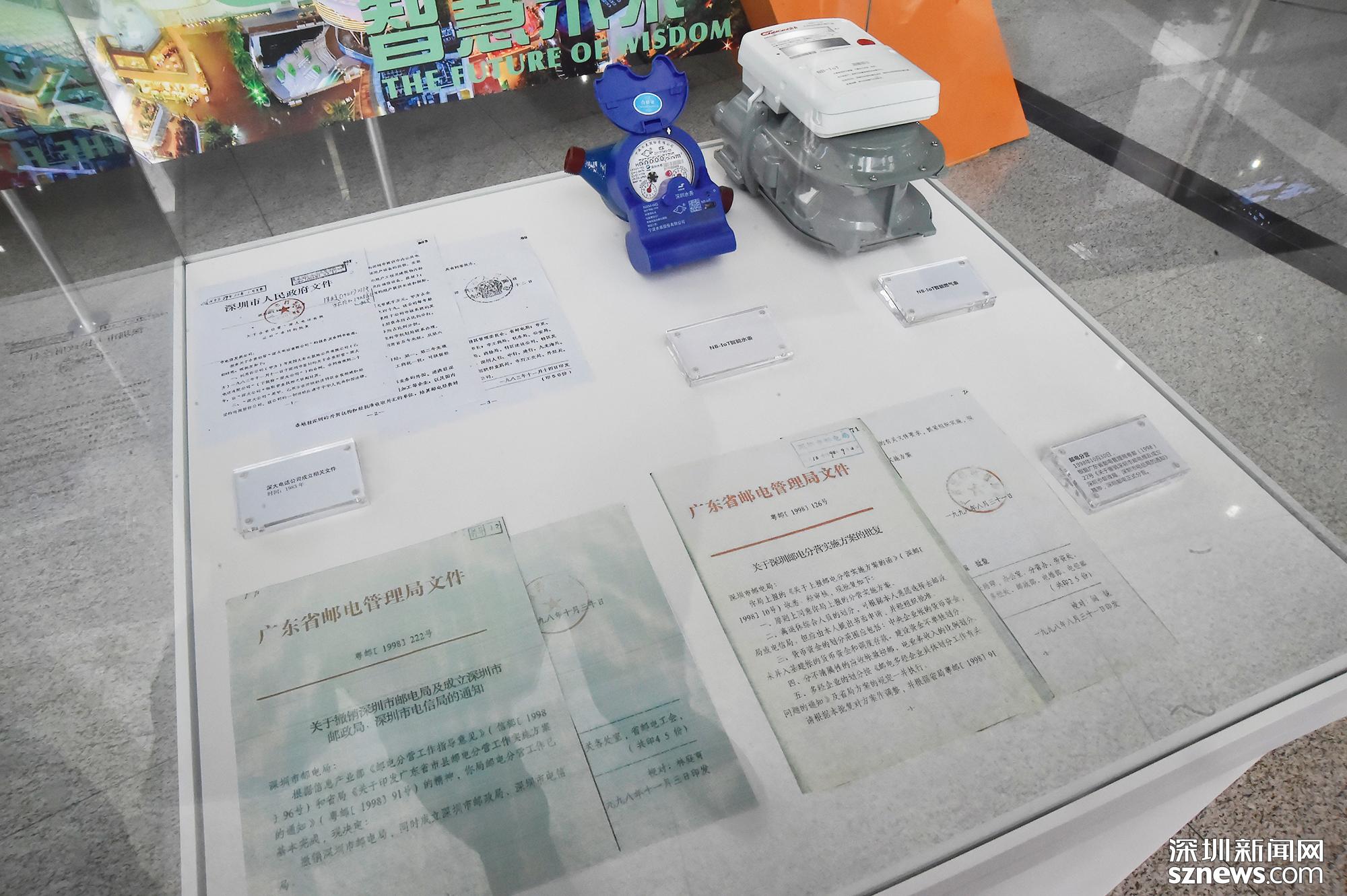 相關(guān)官方文件的展示,左上方為1983年的深大電話公司成立相關(guān)文件,下方為1998年發(fā)布的郵電分營(yíng)的相關(guān)證明文件,該文件發(fā)出后,郵電正式分離。