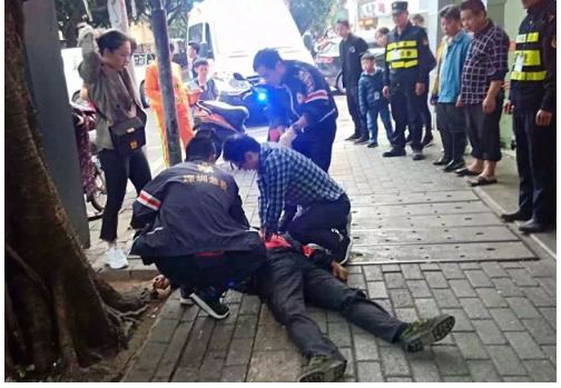 等待120的過程中,周青雨給這名倒地男子按壓幾輪后發(fā)現(xiàn),有了一點微弱呼吸。這個時候另一個市民走向前,摸了倒地男子的脈搏后,接替周青雨繼續(xù)按壓。后經(jīng)了解,其為市第二人民醫(yī)院神經(jīng)內(nèi)科醫(yī)生黃興。
