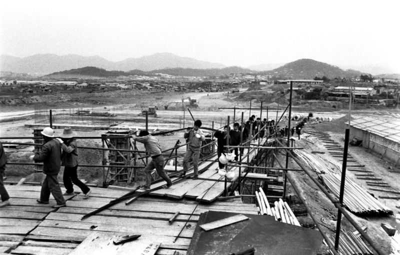 1985年,建設者們在深圳火車站人行天橋施工。呂翔攝
